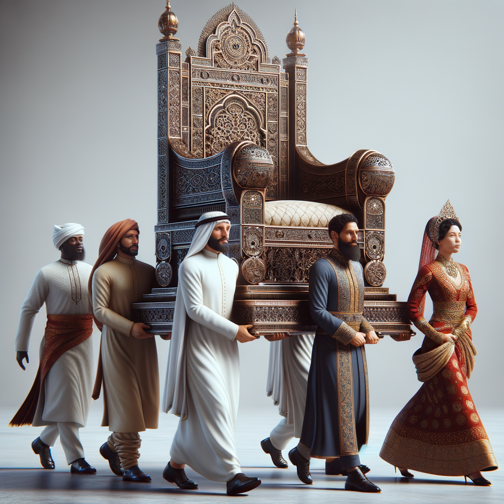 At the heart of this absurdity lie four mighty bearers, each a grotesque caricature symbolizing nothing but Muhammad’s limited imagination: